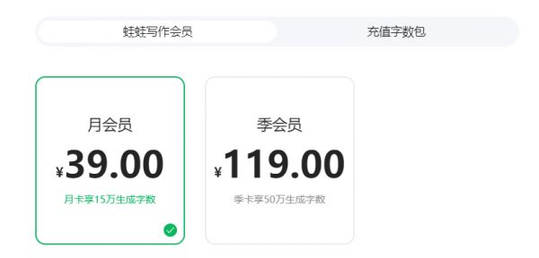 虽然蛙蛙写作也提供了字数包,但购买字数包的前提条件是:你先得是包月会员!