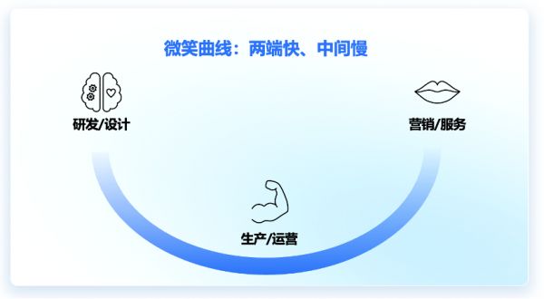 我们总结出一个特点:AI在各行业领域各个环节的渗透呈现出“微笑曲线”模式,即在曲线两端的研发和市场销售环节,AI的落地速度更快;而在中间的生产制造阶段,AI的落地速度相对较慢。以广告业为例,利用AI生成广告素材图,能够极大提升广告设计的效率,从以往的2~3天,提升到只需10分钟。