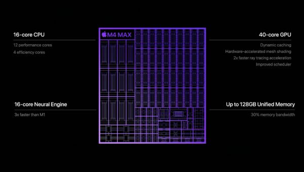 除了前两天已经发布的M4标准版与M4 Pro,最大杯M4 Max也终于在今天亮相。