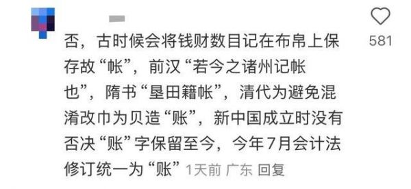 有财务职位的网友表示,与钱有关的一律用账,古代是用贝壳当货币所以跟钱有关的要用“账”。