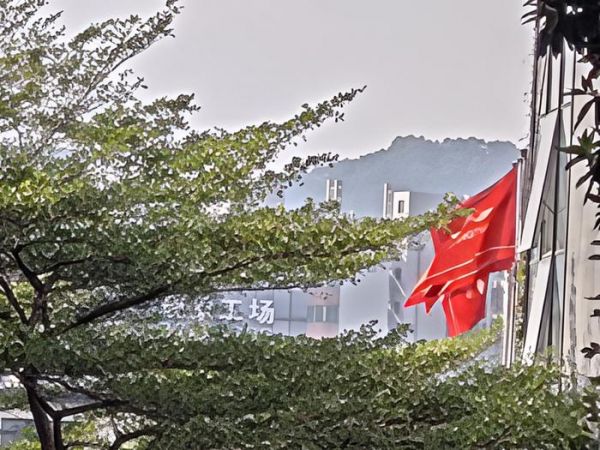 随便从高处拍摄一张园区里的照片,可以看到远处的红旗以及更远处的园区名字基本上都看不清楚了。
