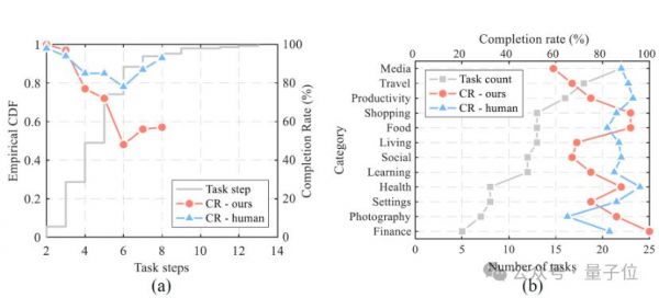 与此同时,团队还设置了人类对比测试,由12名人类评估者手动执行这些任务,然后VisionTasker的结果进行比较。