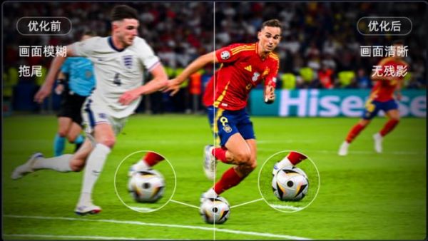 其三是控光。因为灯珠尺寸更小、分区更多,Mini LED电视拥有“天生”的好画质。而在此基础上,信芯®AI画质芯片还可通过全链AI画质计算输出最优背光算法,再通过396颗Mini LED驱动芯片控制3168颗Mini LED芯片(以海信U8N为例),实现1:1逐点控光,带来更快的控光速度和更高的控光精准度,画面鲜活,色彩自然。比如在观看球赛时,基于内置的AI 运动大模型以及AI动态增强超解像、MEMC 运动增强等算法,其可显著改善高速运动中的画面拖尾问题,让画面中的球衣纹理细腻、球员肌肉线条清晰可见。