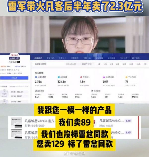 被雷军带火后,代理商吐槽凡客诚品CEO陈年:火了就不让代理商直播了,自己标雷总同款卖贵30元。