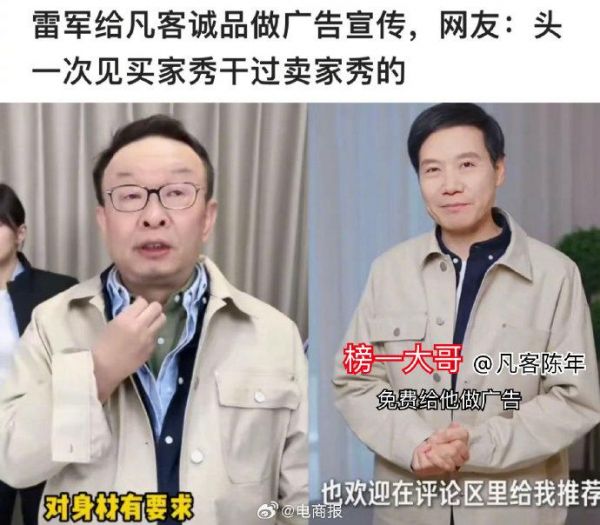 雷军带货凡客:陈年是好哥们,这不算商单