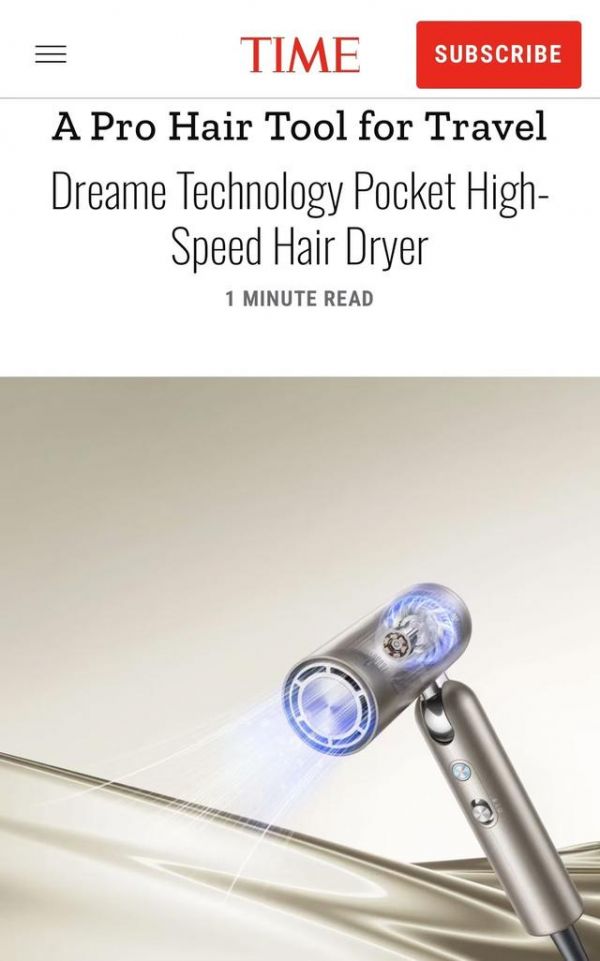 《时代周刊》在评语中称,追觅Pocket高速造型吹风机“轻便且可折叠,但具备标准吹风机的强大功率,并配有附件,可以将其转换为卷发棒或直发器”。