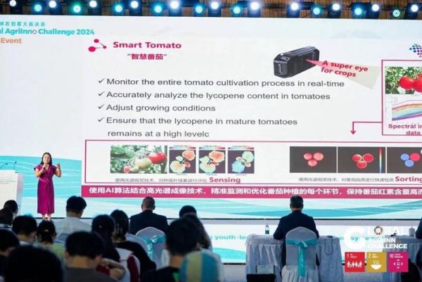 比如2024年全球农创客大赛上夺得铜奖“智慧番茄”项目,研究人员集成了光谱成像和人工智能技术,对番茄进行种植过程的全周期生长监测,不仅让番茄产量更高、番茄红素等营养物质含量更高,还极大地降低了高品质番茄的种植成本。