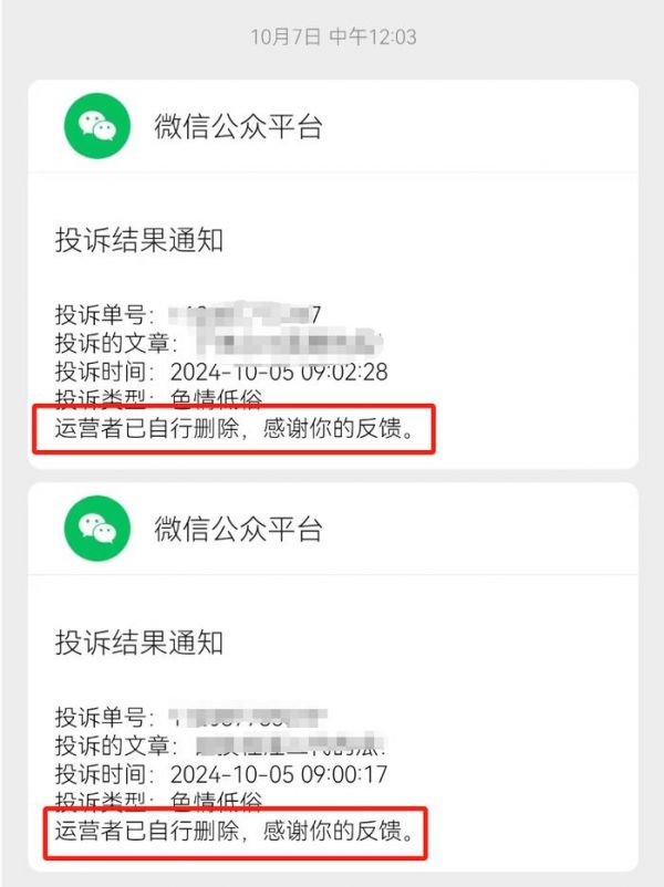 结果那个影响力比我还大的公众号没受到实质性处罚,我收到的反馈是“运营者已自行删除,感谢你的反馈”。