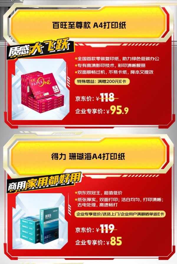 拿我们公司最大的消耗品打印纸来说,价格比平时要便宜不少:一箱能省我两条内裤的钱。