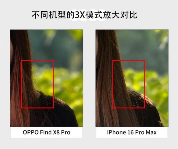如果我们放大发丝来看的话,还可以明显看得出OPPO Find X8 Pro的抠图能力更强,能够识别细微的发丝,没有出现明显“断发”的情况。而iPhone 16 Pro Max就把部分发丝直接虚化了,看上去会稍微没那么自然。