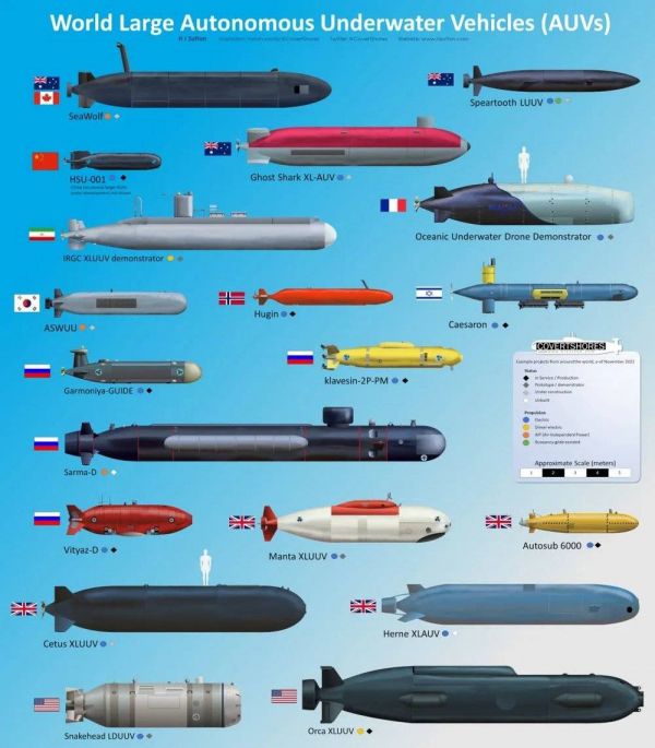 图:各国大型自主无人潜艇示例。|来源:LatentSpace