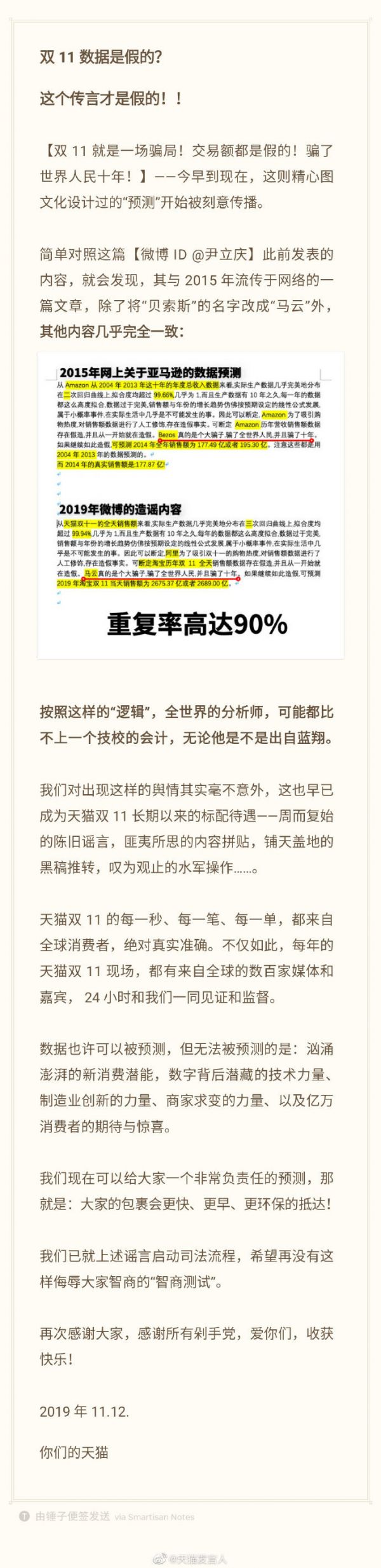 天猫再回应“双11数据造假”:已启动司法流程