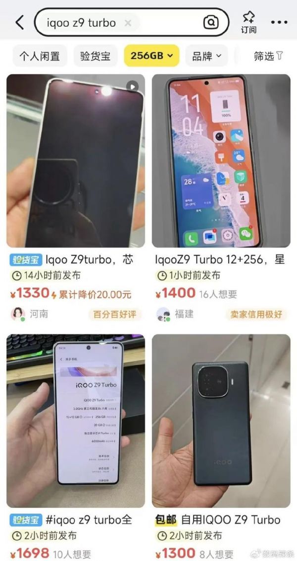 我瞅了一眼闲鱼报价,目前iQOO Z9 Turbo12G+256G版本也要1300元以上,跟新机价格没啥两样了。当然也不乏“传家宝”报价,还有人开价1698元,那就是来搞笑的。