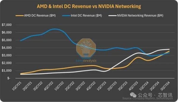 显然,在2024年第三季,AMD的数据中心业务的营收首次超过英特尔。这主要得益于AMD Instinct GPU出货量的强劲增长和AMD EPYC CPU销售的增长。特别是随着AMD EPYC CPU获得了优于英特尔Xeon CPU 的竞争优势,英特尔不得不以大幅折扣出售其Xeon CPU,这降低了公司的收入和利润率。