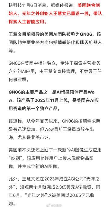 网址: 美团联合创始人王慧文回归,担当美团AI小队长 http://www.xishuta.cn/newsview127934.html