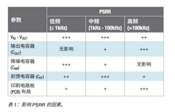 PSRR是常见的技术参数,它规定了特定频率的交流元件从LDO输入衰减到输出的