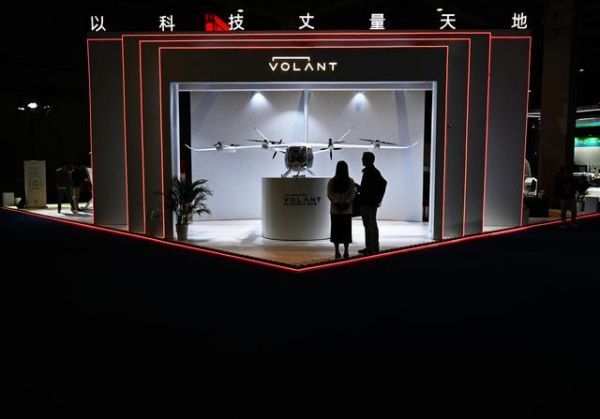 11月5日,观众在第七届进博会汽车展区参观一台电动垂直起降飞行器模型。 新华社记者 张可任 摄