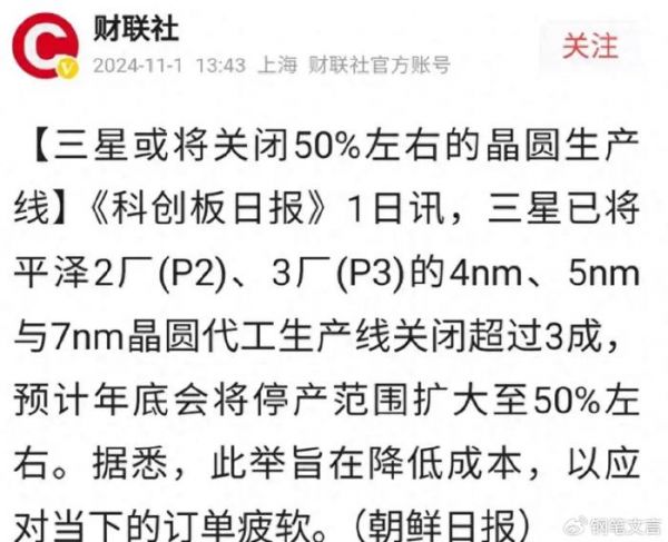 一方面,三星的晶圆代工业务陷入困境,订单不足成为关闭生产线的直接原因。据报道,三星第三季度亏损达1万亿韩元(约合7.24亿美元),并将平泽厂的生产线转向需求更稳定的内存业务,以减少开支。