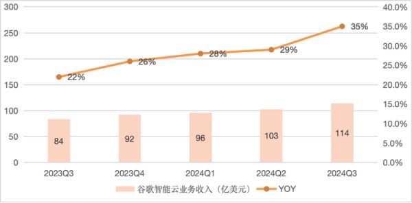 相比之下,Google Cloud反而表现更为强劲,Alphabet母公司财报显示,Google Cloud 2024Q3营收为113.53亿美元,与上年同期的84.11亿美元相比大幅增长,同比增长35%。