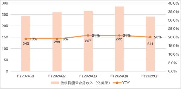 美东时间10月30日,微软发布2025财年Q1财报,财报数据显示,智能云业务分部收入为241亿美元,略高于市场预期的240.4亿美元,相较于去年统计口径调整后的收入数据,同比增长20%,主要受Azure和其他云服务的推动。