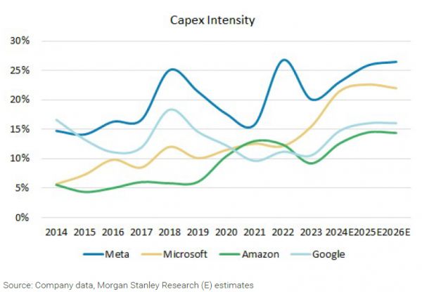 科技巨头保持最高的Capex支出强度