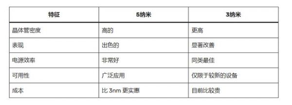 5纳米与3纳米的比较