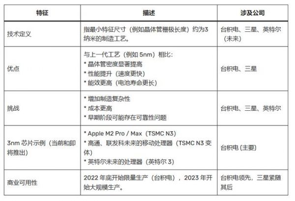 - 3纳米工艺在功耗、性能和芯片密度方面具有显著提升