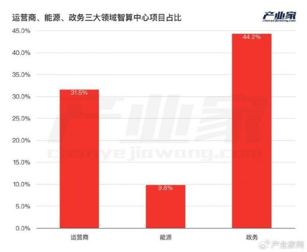 另外,从行业分布来看,政务和运营商对智算中心的出资则更加大手笔。对此,产业家统计了运营商、能源和政务三大领域中智算中心项目的占比:结果显示,政务行业对智算中心的投入更大,其中包括GPU租赁、硬件以及算力调度平台的采购。