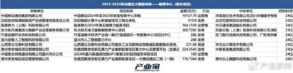 而像这样的智算中心采购项目,央国企已经开始了铺天盖地的建设。对此,产业家根据金额大小,列举了近两年央国企采购智算中心项目金额最高的10个。