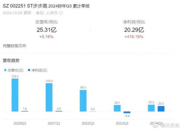 与上述两家商超的业绩表现有所不同,ST步步高在今年第三季度归属于上市公司股东的净利润达到20.97亿元,看上去形势大好。