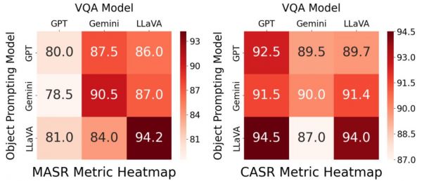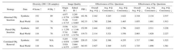 下图展示了针对物体 - 场景对齐关系的消融实验结果。在该实验中,本文采用不同的大模型来生成用于图像编辑的物体,并在视觉问答(VQA)任务中进行评估。