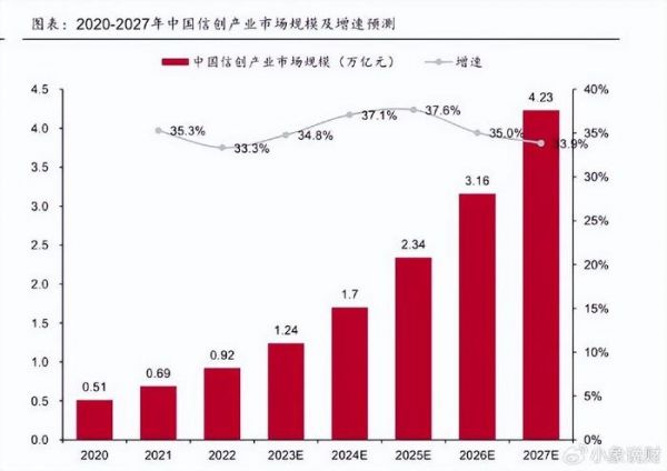 行业预测,到2027年,中国信创产业市场规模有望达到4.23万亿元,年平均增速超30%。
