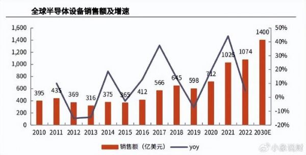 2022年以来,全球半导体设备市场规模开始加速扩张,预计到2030年,全球半导体设备销售额将增长至1400亿美元。