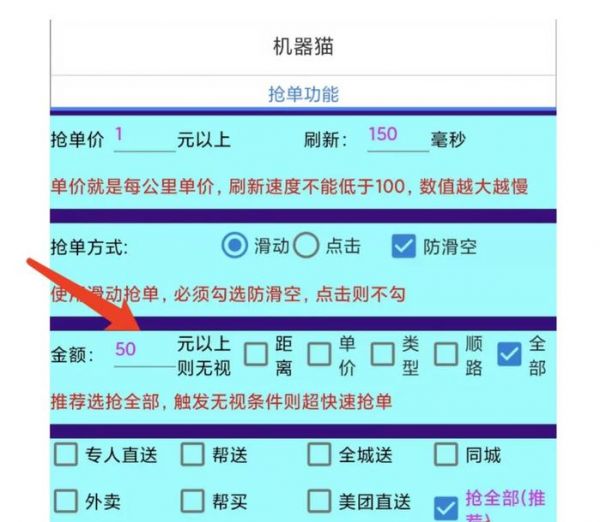 骑手可以通过外挂的定制功能,筛选出满足自己条件的订单,并在第一时间内抢到进行派送。