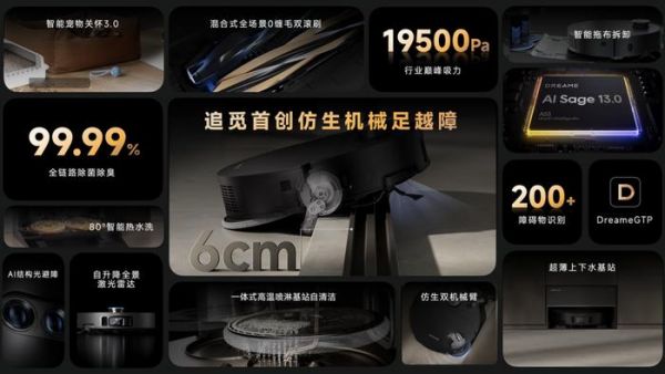 在今年9月,追觅科技全品类新品发布会上,发布了搭载着追觅首创“仿生机械足越障技术”的扫地机X50系列、搭载追觅首创灵捕智能升降机械臂和100℃火山湖浸泡洗技术的旗舰款洗地机T40 Ultra、行业领先的310AW大吸力超强除菌集尘基站吸尘器Z40 Station等具有革命性的产品,将尖端技术用于生活普惠。