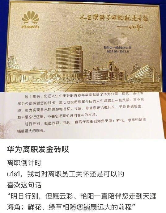 华为主动离职都有补偿,员工晒n+1和金砖。