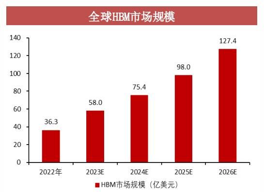 从行业数据看,2022年全球HBM市场规模约为36亿美元,预计2026年有望达到127亿美元,年复合增速近37%。