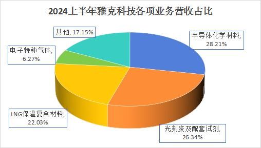 光刻胶业务是雅克的第二大盈利来源,2024上半年营收占比26.34%,仅次于半导体前驱体材料。