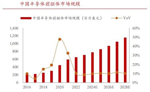 而中国作为全球半导体前驱体的主要市场,预计2028年将达到12亿美元,年复合增速近10%。