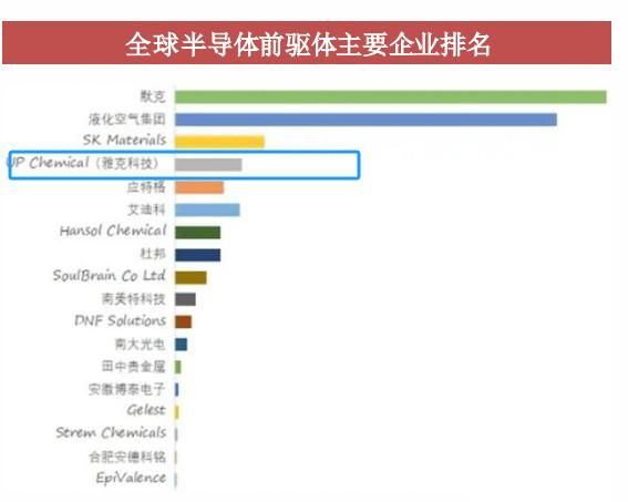 而雅克科技通过收购UP Chemical后,成为国内唯一跻身全球前五的半导体前驱体企业,稀缺性十足,实现国产替代的潜力巨大。