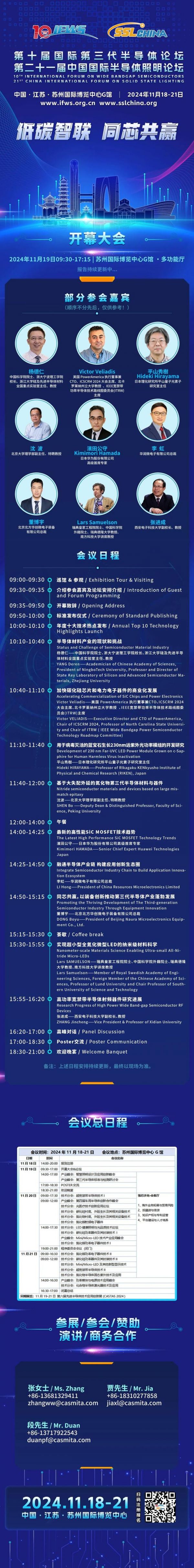 2024年11月18-21日,第十届国际第三代半导体论坛(IFWS2024)&第二十一届中国国际半导体照明论坛(SSLCHINA2024)、先进半导体技术应用创新展(CASTAS)将在苏州国际博览中心举办。