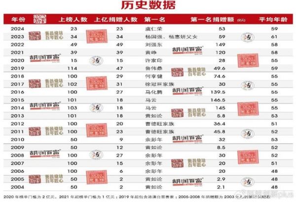 上图是历年捐款数最多的大佬名单,大家可以看看每一年的中国首善是谁,捐了多少钱。
