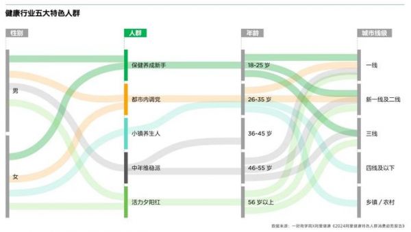 如9月发布的《2024阿里健康特色人群消费趋势报告》所示,不同人群的健康诉求往往会划分出不同的消费决策的动机与需求场景。比如,大部分保健养成新手的健康消费往往从面部状态的救急维稳开始,而都市白领人群更注重在内调健康状态的投资。