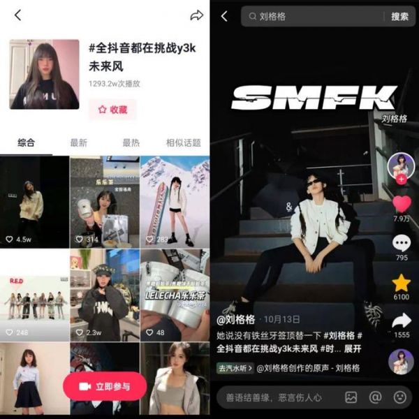 SMFK联手达人发起热点话题#全抖音都在挑战y3k未来风