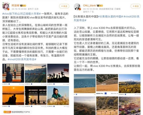 在摄影圈层,vivo X200系列超级长焦是讨论焦点,献礼短片《远 不止影像》在这里发酵。在科技圈层,行业KOL的开箱测评带动了用户深入讨论,加速了产品影响力的扩散。