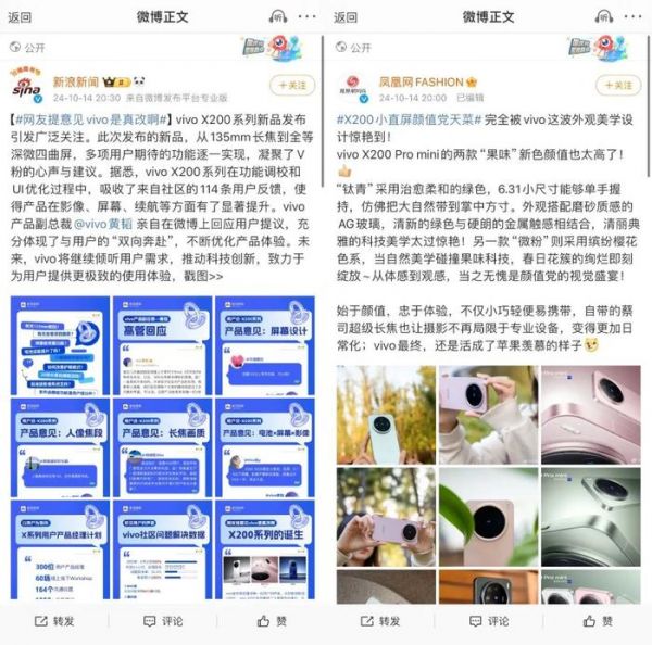此外,在多级评论区的推动下,转发、评论和点赞的互动得到了极大增强,进一步加热了vivo X200系列上市的热度。