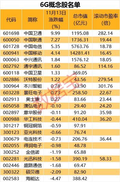 11月15日精选热点:6G领域传出重大利好,这些地位公司受益