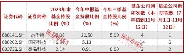 表2 杰华特、国芯科技、泰晶科技基金持仓及调研情况