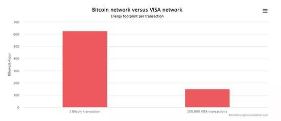 比特币与其他支付系统电力消耗比较