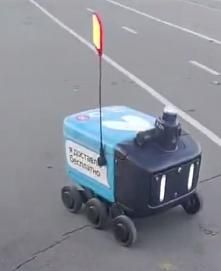 我在莫斯科街头遇到了送货机器人,在国内也不多见。